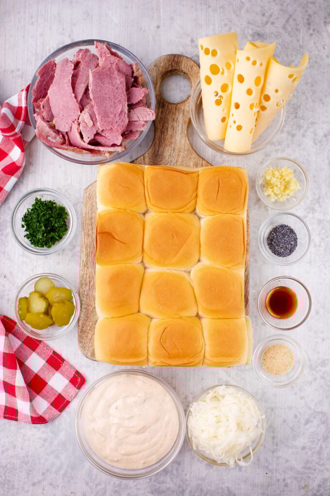 - 1 package King's Hawaiian rolls 12 count Can substitute with rye bread slider buns