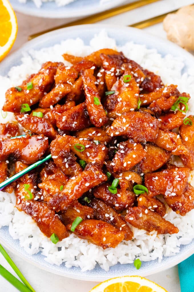 For a lighter meal, serve this ginger-crispy sesame chicken wrapped in large butter lettuce leaves, with some of my cauliflower rice on the side. I also recommend serving it with homemade fried rice, or try my Instant Pot stick of butter rice, which is dripping with sweet, creamy butter and takes only 15 minutes to make.