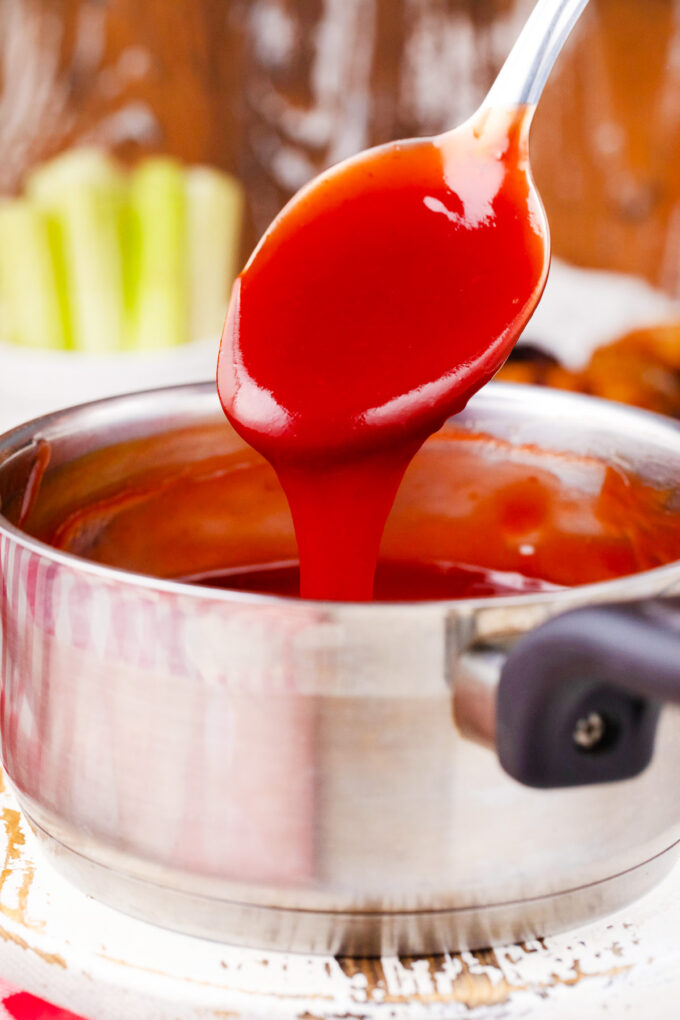 - Remove the sauce from the heat once it thickens and coats the back of a spoon.